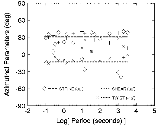 Of the parameters solved for in decomposition analysis of the impedance tensor, regional strike is by far the most important parameter. Accurate recovery of the regional impedances, and therefore accuracy of the interpretation, is dependent on recovery of the correct regional strike. Unfortunately, regional strike is often one of the poorest resolved parameters in decomposition analysis (Jones & Groom 1993). The resolution of regional strike is a function of both frequency and position and its recovery is impeded by galvanic distortion and experimental error.